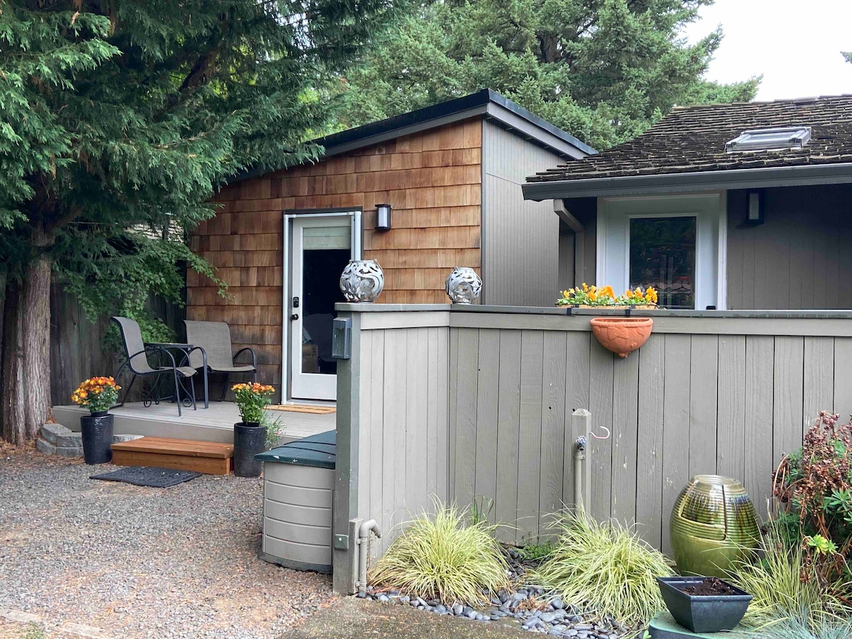The Sellwood Sanctuary guesthouse complete with its own fully stocked bathroom, kitchen and queen sized bed with Dreamcloud Premier mattress that includes a luxurious foam topper. Half a block from one of Portland's best parks and Springwater Bike Trail. Great shopping, coffee shops, bakeries, food carts and restaurants all within walking distance. New Seasons grocery store is a few blocks away.