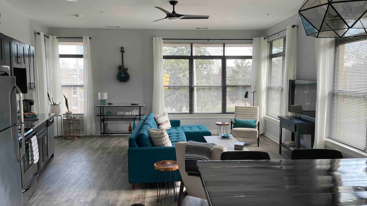 This professionally designed studio is minutes from Nashville’s top venues and just 2 miles from the Broadway - perfect for concert nights and couples’ getaways. Guests often say this is one of the cleanest stays they’ve experienced. Enjoy reserved parking, easy self check-in, a fully stocked coffee station, high-end finishes, a spacious walk-in shower, and a comfortable home base close to it all.
