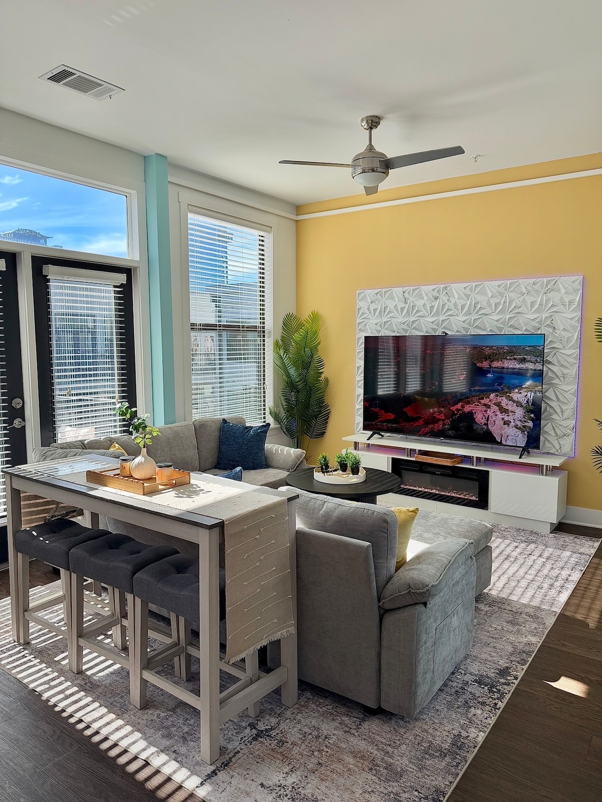 Welcome to Dolly Vibes Only, a 1-bedroom, 1-bath retreat full of Dolly Parton flair in the heart of Sylvan Park! Just a mile from Vanderbilt and 2 miles from the buzz of Lower Broadway, this ever-so-Dolly chic retreat brings Nashville to your doorstep with all the glitz and glam of Dolly herself!. Enjoy the cozy outdoor space with Adirondack chairs and café lights at the end of the day. It’s perfect for play or a “9 to 5” work day.
