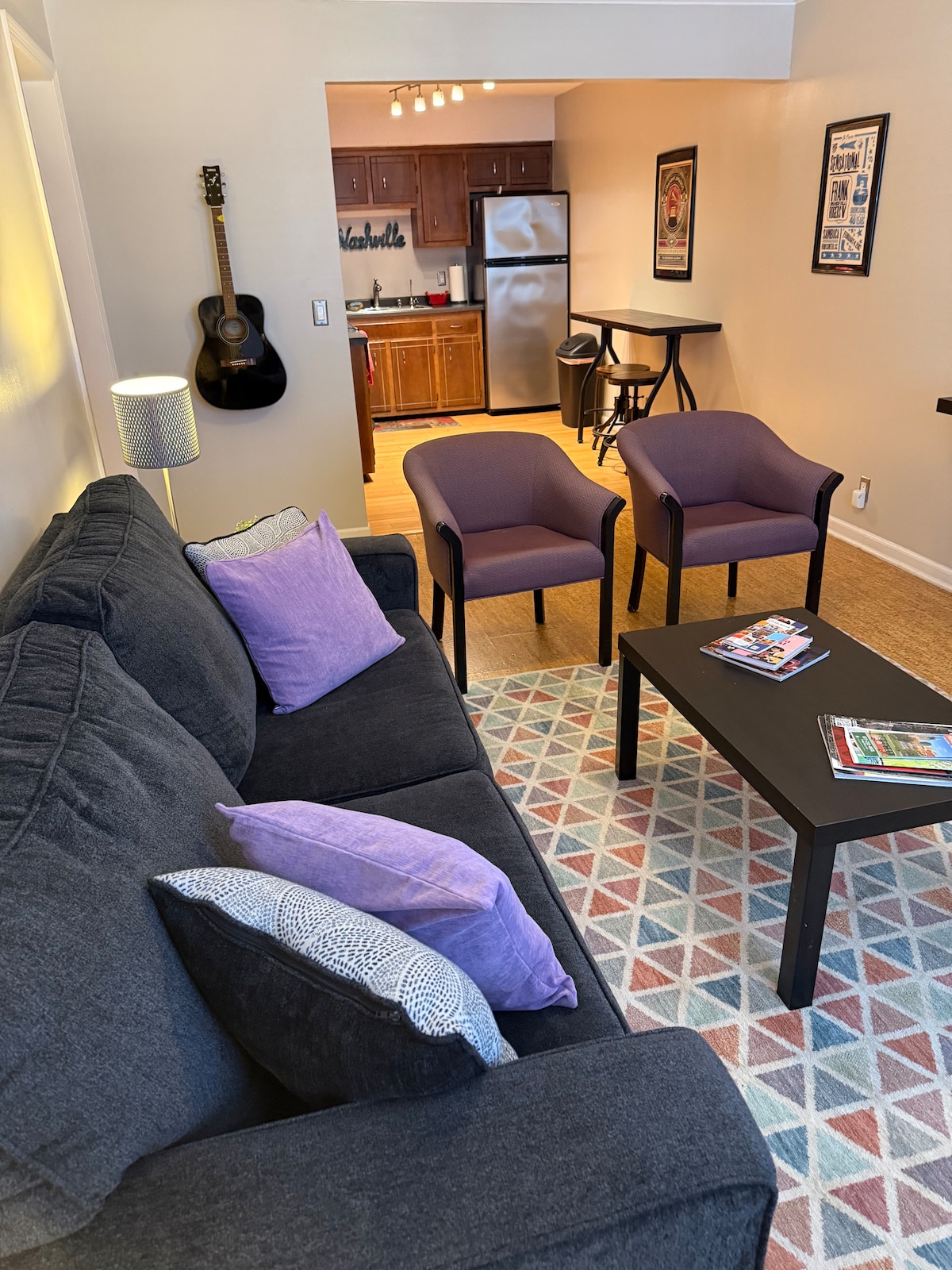 Welcome to Music Row’s Spence Manor, home of world-famous musicians including Elvis Presley, Paul McCartney and Johnny Cash. Most artists would stay here when in town to record at nearby studios. This condo was designed to bring back the luxury that these musicians enjoyed. It is at the center of all Nashville entertainment. Enjoy the amenities which include a guitar-shaped pool (May through September) and free parking for 1 vehicle.