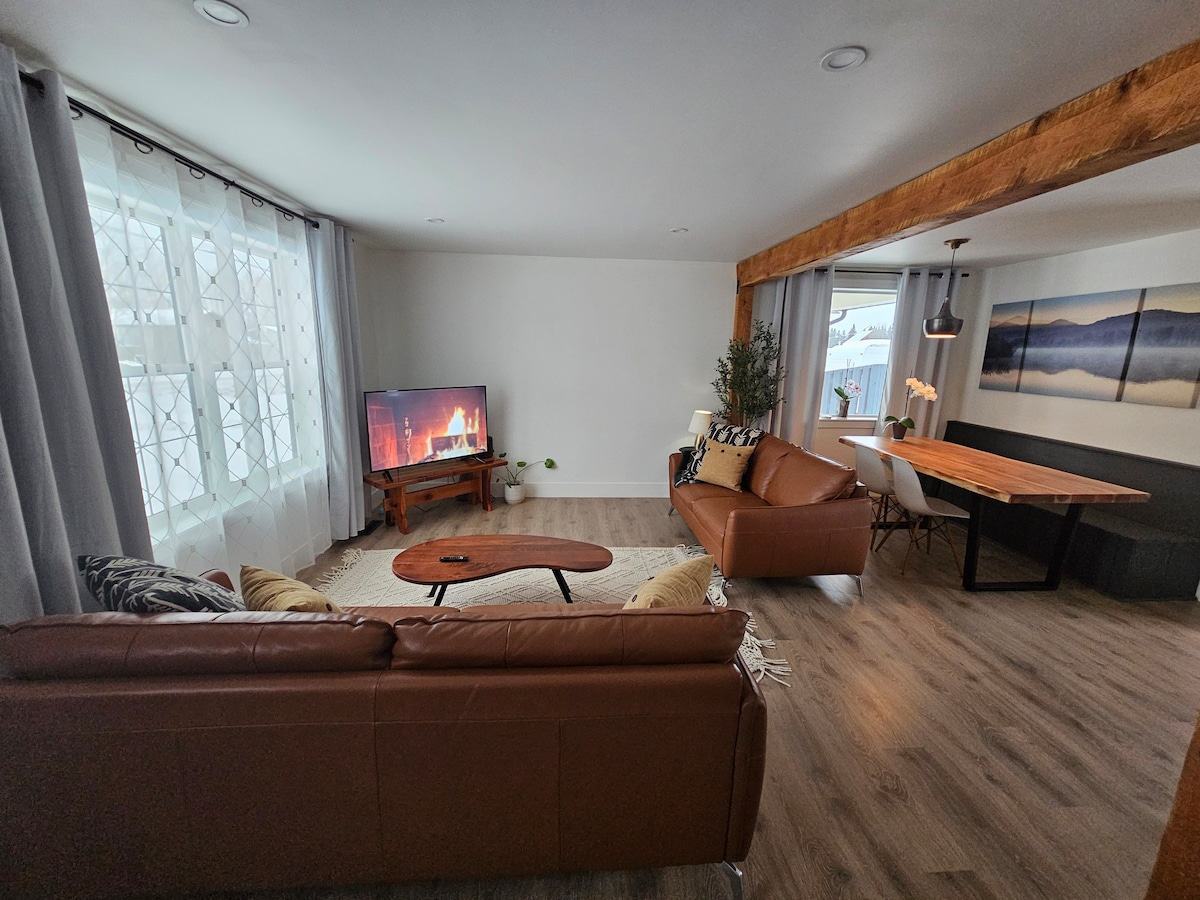 Experience the breathtaking views of the Nechako River in our modern 2 bdrm walk-out suite! The Sunset Suite offers tranquility away from home. All stainless steel appliances in the gorgeous kitchen, a family room with sectional and tv to enjoy in the evening, and a separated bathroom with a claw-foot tub for your pleasure, are some of the highlights of this suite. Everything is aesthetically pleasing to meet your high standards. In addition, it is centrally located downtown.
