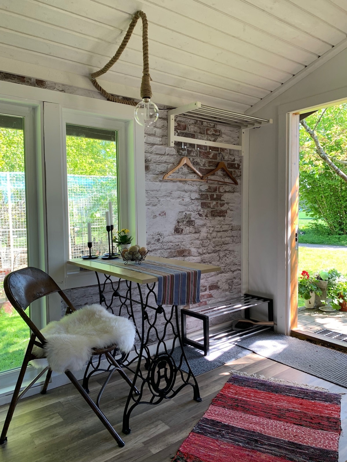 Backens B&B erbjuder fyra sovrum med mellan 2-3 bäddar per rum. Detta rum, Gunborg, ligger på andra våningen och har två enkelsängar och en soffa. Gäster delar på pentry med mikrovågsugn, kylskåp, kokplatta och utrustning för enklare matlagning. Utöver matplats med pentry delar gäster på två badrum med toalett och dusch samt ytterligare en toalett. Frukost är ett tillägg som bokas enligt överenskommelse innan ankomst. Vill du hyra fler finns även de rummen här på Airbnb.