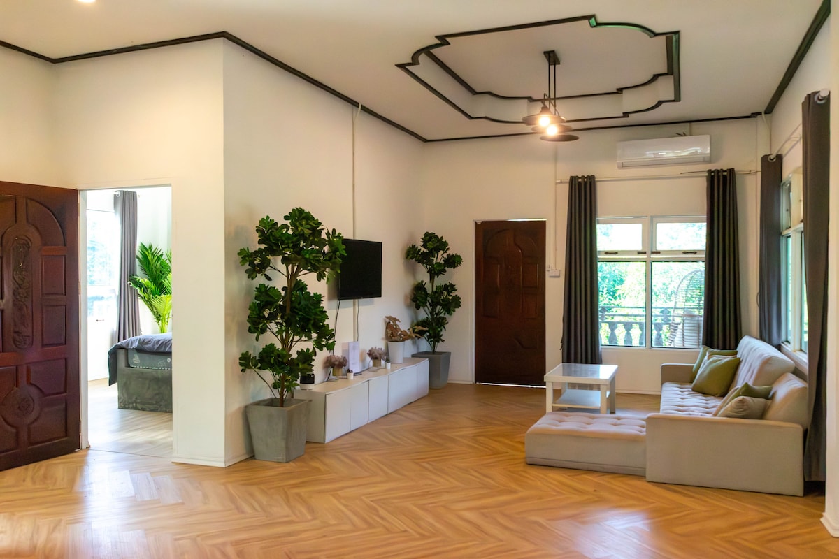 Nestled in a picturesque rural landscape, Dalasone Pool Villas offers a unique retreat combining rustic charm with modern comforts. The resort features a stunning swimming pool surrounded by lush greenery, perfect for a refreshing dip or a relaxing lounge. Elevated wooden houses add a touch of traditional elegance, while the backdrop of expansive fields and majestic mountains creates a serene and breathtaking environment.