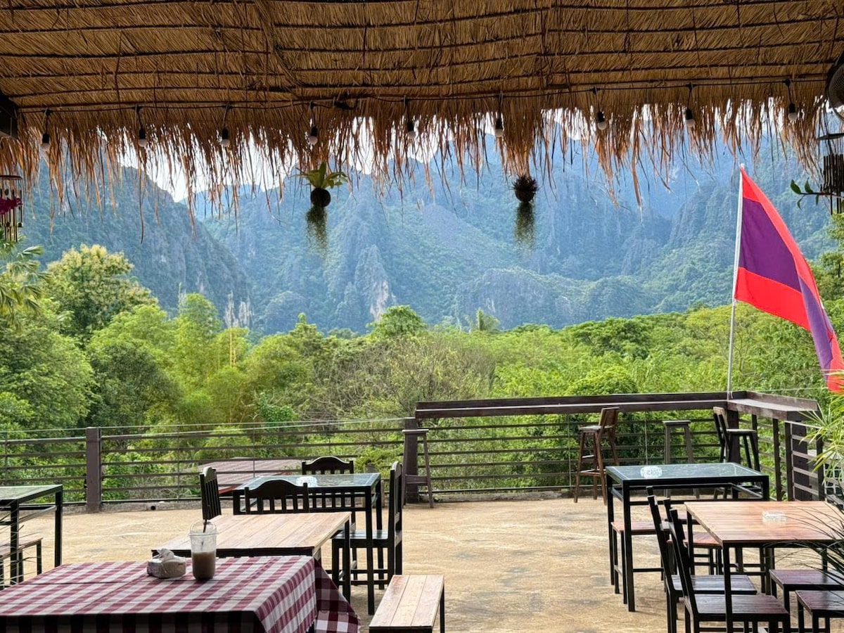 Vang Vieng, a few steps from the city center, after crossing the main bridge of the river "Nam Song" on the other side of the shore, calm and quiet, facing the karst mountains is the small authentic village of "Ban Huay Yae ". two bungalows where you will find all the necessary comfort for your stay in Laos.