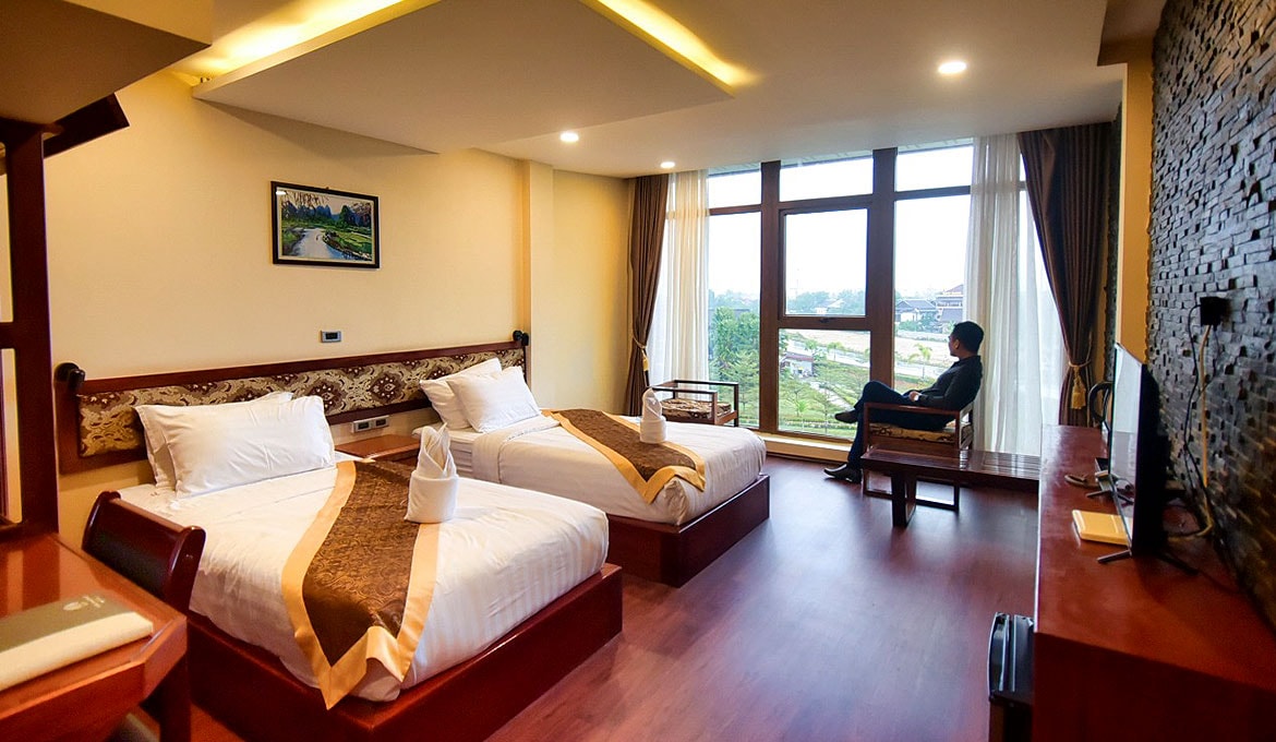 VANG VIENG VICTORY HOTEL has a beautiful out door swimming pool. All rooms are clean, comfortable with Silk pillow and balankets, Air Conditioner, Minibar in Fridge, free water, tea & coffee, Desk, Safty Box, Hairdryer, 5 star shampoo, bath gel, conditioner, Satellite TV with over 60 chanels, unlimited Towels, The accommodation offer 24h Reception, Free Breakfast, Free Fast Wifi. We are welcome all of you we are surely that you will have unforgettable with Vangvieng Victory Hotel in Lao