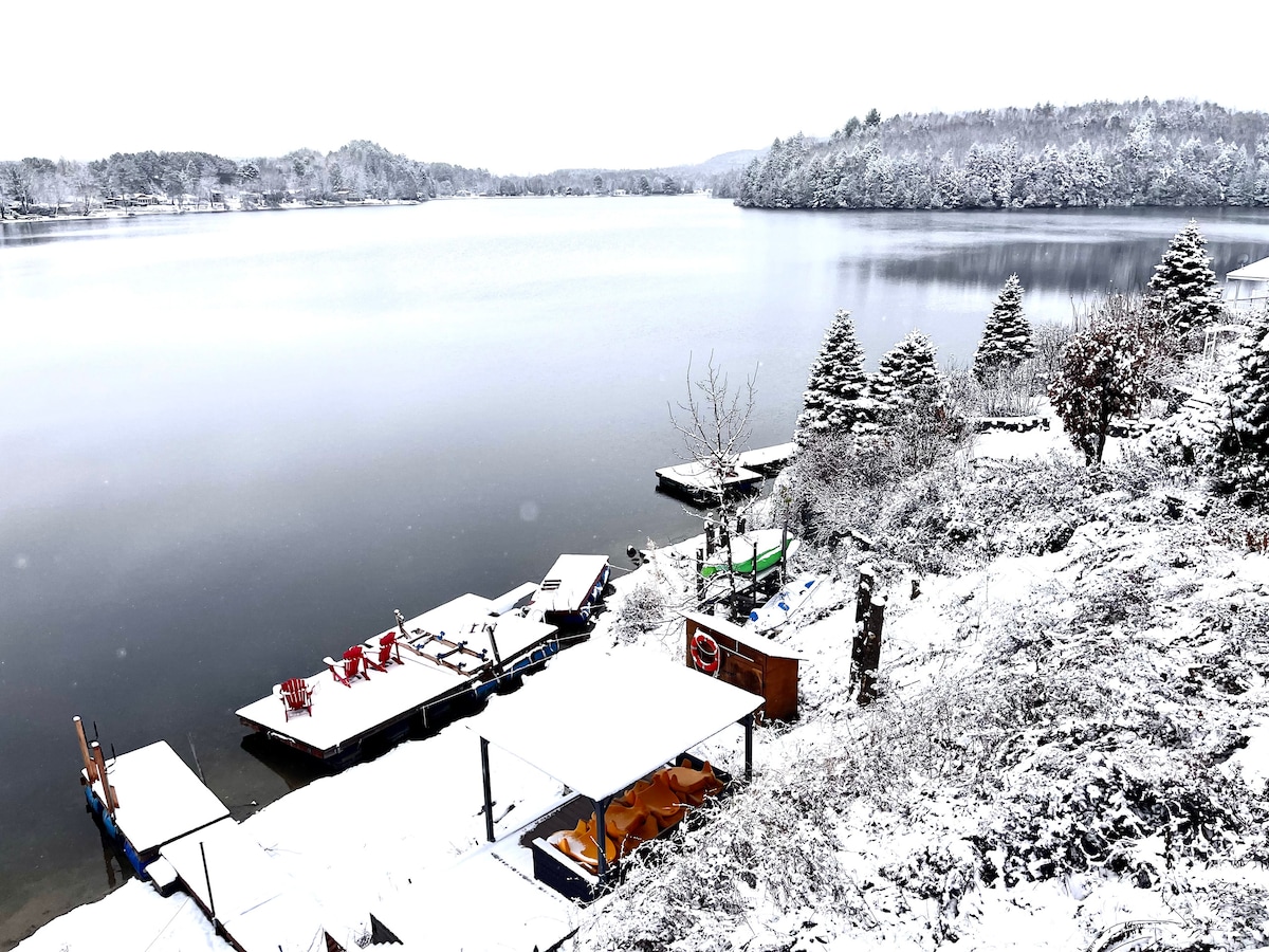 Enjoy a peaceful getaway with stunning views, located directly on Lac des Iles Short drive from Omega parc ,Tremblant Village and Ripon hiking trails. In summer enjoy the lake : swimming , fishing , kayaking and paddle boating . In winter enjoy a cozy fire with peaceful views of the lake. We provide clean sheets, towels, a pedal boat and a kayak Events/Parties are strictly forbidden! No hunting related activities ! Firewood not included-No open fire permitted.