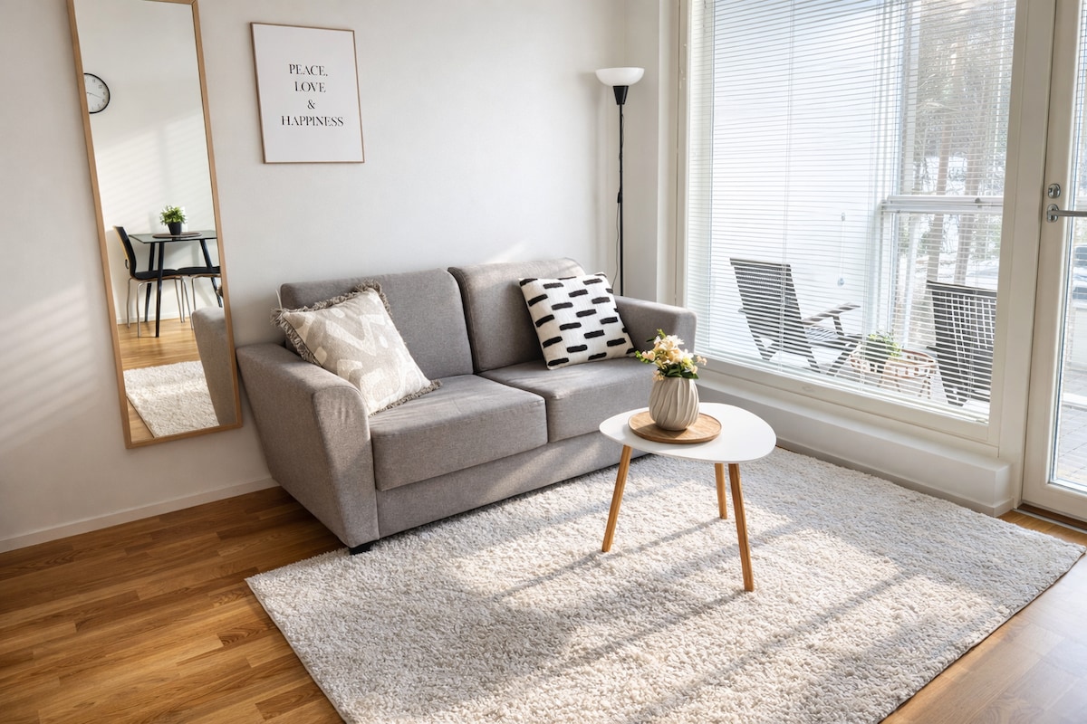 The apartment is centrally located next to Tikkurila train station and a short train ride away from/to Helsinki-Vantaa airport or from/to downtown Helsinki. The apartment is cosily furnished and it is well suited for short and long-term stays. The apartment is located in a quiet and peaceful building on the 6th floor.
