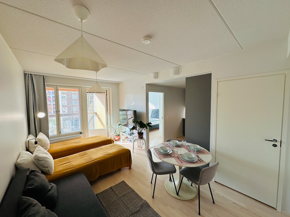 Welcome to brand new & beautiful 31 m2 apartment near Helsinki Airport, only 150 meters to Kivistö station. It takes only 6 mins to Helsinki Airport & 25 mins to Helsinki City Centre by train. The living room & kitchen share the space with 2 single beds, a double sofa bed for 4 guests. The kitchen & bathroom are modern and well-equipped. The studio fits well with family and friends travelling as well as people on business trip. All necessary services and public transport just around corner.
