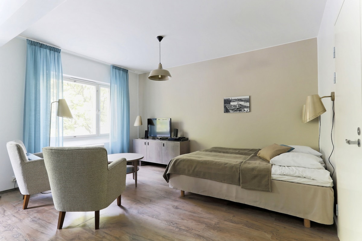Experience our double room equipped with free Wi-Fi, a sink with drinkable water, a fridge, opening windows for fresh air, a wardrobe, a desk, and a mirror. Senate Hotel is a charming boutique hotel located in the prestigious Kruununhaka neighborhood, just behind Helsinki Cathedral. The area offers excellent transportation options and is close to must-see attractions, making it an ideal base for exploring the city.