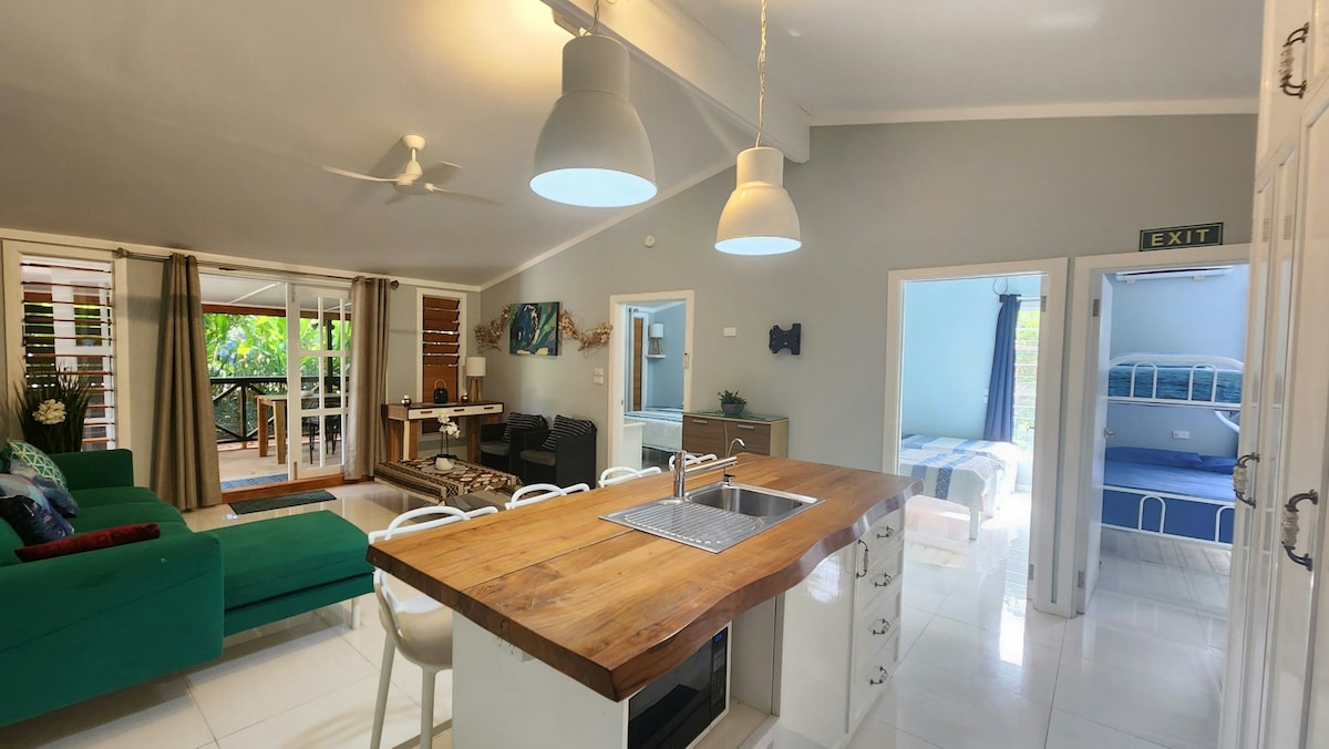 Wake to sweeping ocean views at this adults-only luxury beachfront villa in Savusavu. Perfect for couples and honeymooners, it features a private white-sand beach, snorkelling and kayaking, and easy access to the world-famous Rainbow Reef. Enjoy a spacious king suite, open-air tropical living, and a daily breakfast made with local ingredients. Home-cooked lunches (FJ$25) and chef-prepared dinners (FJ$55) available. Superhost-run and loved for its privacy, romance, and authentic Fijian warmth.