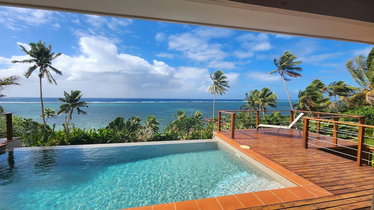 Clifftop ocean front with beach access! Enjoy breathtaking views from the entire villa including your private patio as well as use of the on-site resort amenities including beach access, infinity pool, and fresh daily farm-to-table restaurant. Relax into the luxurious bedroom boasting a king bed and a lavish lounge with desk, sofa, reading nook, coffee/tea/bar. Enjoy the fabulous indoor and outdoor shower surrounded by lush tropical gardens. All the comforts of home while you explore Taveuni.