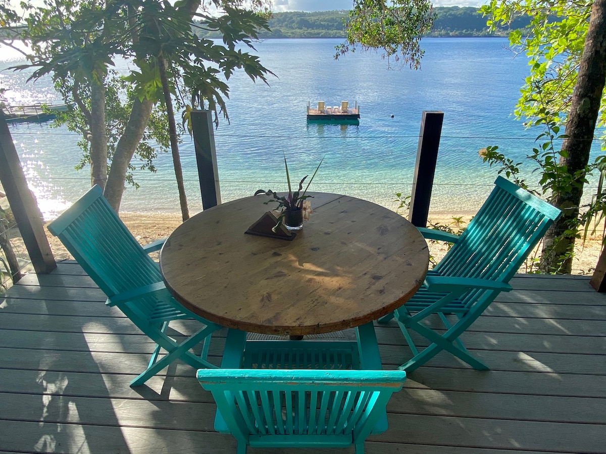 A Couples Retreat, Family Adventure or Fisherman's Haven, Solace has it all. Discover the ultimate getaway on Moso Island, a scenic 45-minute drive & 5 minute boat ride from Port Vila. This self-contained villa offers 🛌 King bed 🛏️ Separate small bedroom with bunks 🍴 Fully equipped kitchen 🚿 Outdoor shower & separate bathroom 🌅 Outdoor seating area, ocean views 🏖️ Beachfront property 🌿 Spacious front and backyards ☀️ Fully solar-powered 🛜 Wi-Fi Off the grid with all modern convenience