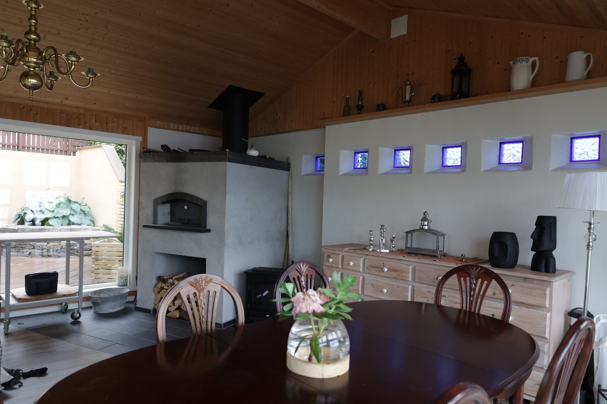 Her har du et flott sted hvor roen kan senke seg. I 3 etg er det tre soverom. En stue og sovesofa. I 2 etg er hovedinngangen. Master bedroom med eget bad (lite toalett med dusj). Romslig kjøkken med 10 sitteplasser og 1 tripptrapp stol. Stor tv-stue og en spillekrok med tilgang til brettspill. I kjelleren (1 etg) er der hagestue. 1 soverom. 2 bad og ett vaskerom, med både vaskemaskin og tørketrommel. Pizzaovn kan spesialbestilles for bruk. Utgang til hage og bakgård.
