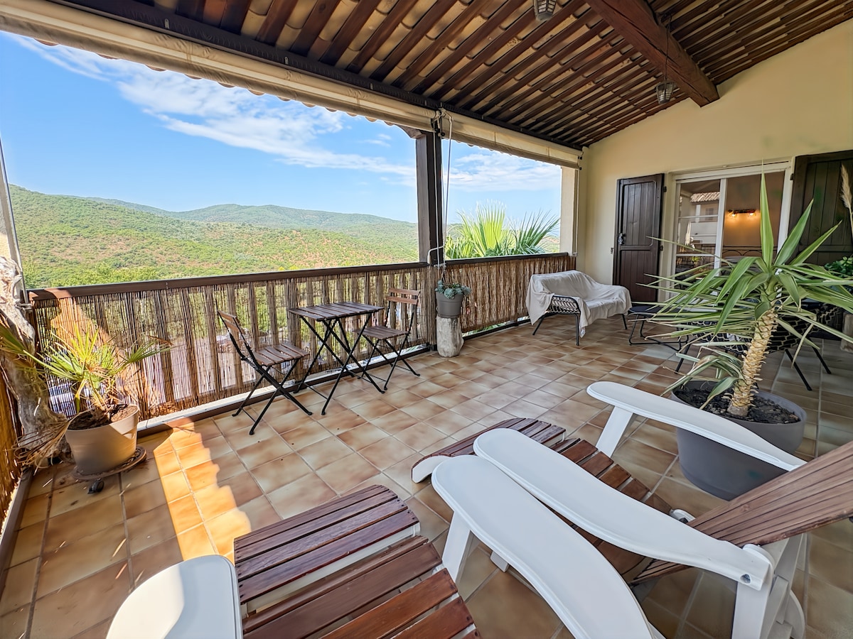 Grande chambre avec entrée indépendante et terrasse au RDC de notre maison. La salle bains (douche italienne, 2 lavabos et WC + coin cuisine) est spacieuse, ouverte sur la nature. Un coin canapé pour se détendre et regarder la TV. La propriété est en hauteur sur un terrain en restanque. Calme assuré, belle vue sur le massif des Maures. A 18 km des plages et à 22 km de la Presqu'Ile de Giens