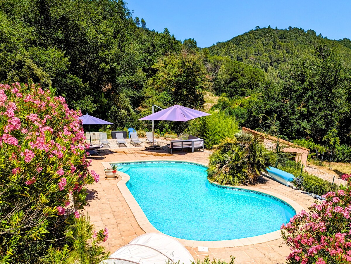 Magnifique studio refait à neuf exposé plein sud avec terrasse privative donnant sur piscine. Vous pourrez profiter du pool house privatif 24h/24 - 7j/7 comprenant le jacuzzi 5 places (été & hiver), lumières et cascades en face de la piscine + cuisine extérieure. Un séjour idyllique entre amoureux et reposant pour les personnes de passage ! A 5 minutes à pieds du centre ville, 25 min de Sillans-La-Cascade, 30 minutes de la mer 40 minutes des Gorges du Verdon et 1h de St Tropez.