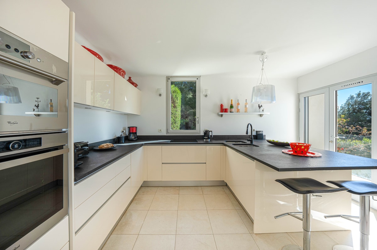 Welcome to your haven of peace ! This exceptional villa’ welcomes you with : ️ - An infinity pool facing the mountains ️ - A pool house equipped with barbecue for your evenings integral - air conditioning for perfect comfort ️ - Television in every room and in the living room ️ - Secure private parking All in a peaceful, elegant, and bathed in light. Ideal to recharge with family or friends. Book your piece of paradise now !
