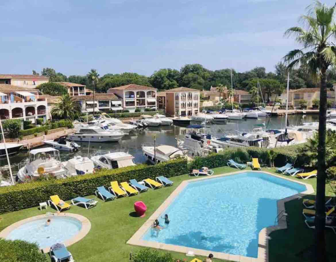 Golfe de Saint-Tropez...les Restanques, à un kilomètre de la mer, avec gardien, parc aquatique composé de : piscine à vagues, jacuzzis, piscine chauffée, toboggans, bassin enfants, bars, restaurants, supérettes, lac, tennis, terrain de foot … L’appartement climatisé est composé d'un séjour avec canapé lits doubles, une chambre avec lits superposés, une salle de bain, un wc, une cuisine, et une superbe terrasse avec une vue mer.