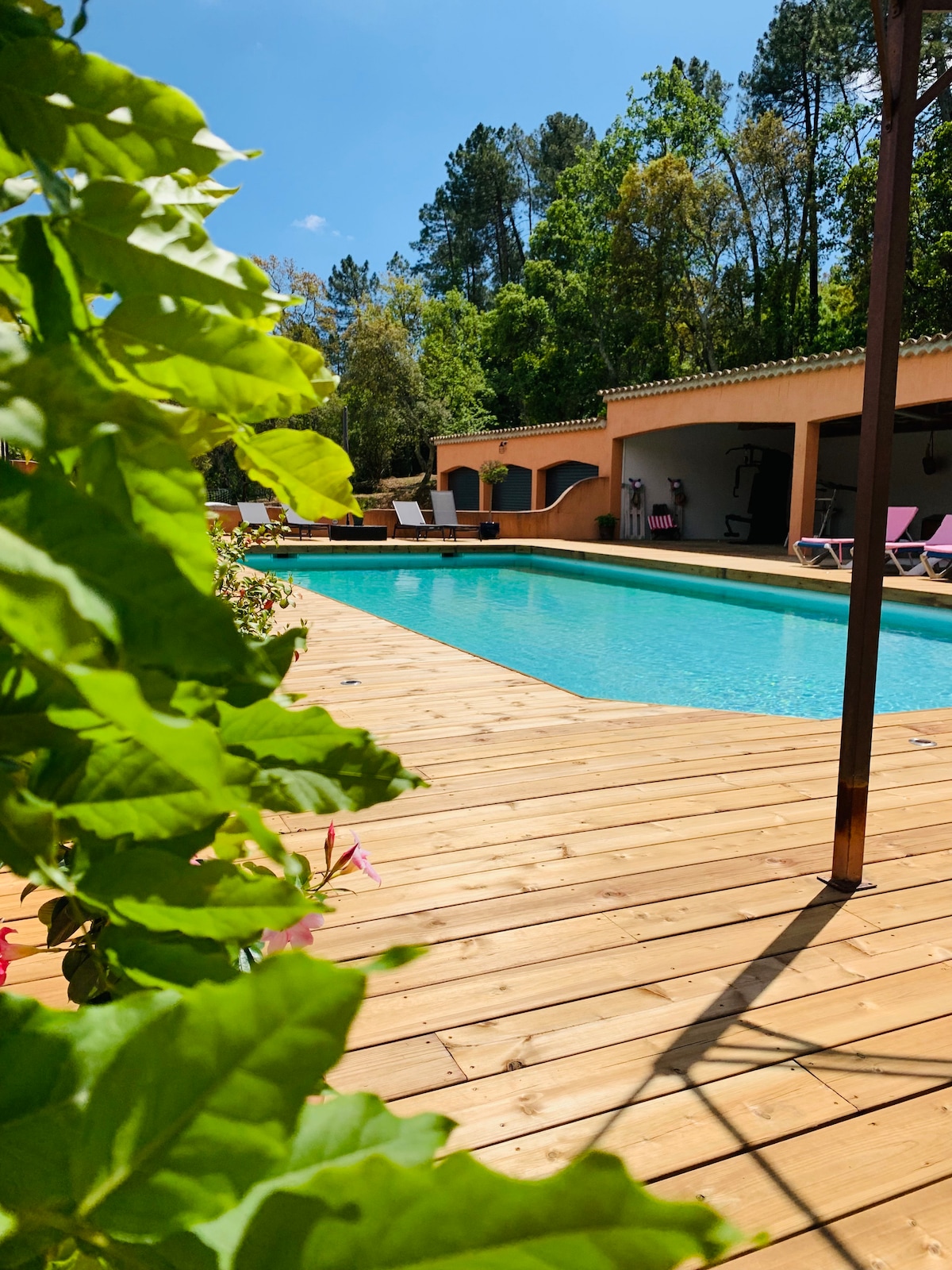 Maison située sur notre propriété de 6000m2 sur les hauteurs de Trets. Nous habitons sur place mais la terrasse et une partie du jardin est privative et sans vis-à-vis. Environnement très calme et dans la verdure. Dans le jardin, il y a en accès partagé terrains de sport et jeux (pétanque, basket, foot, tyrolienne 25m, trampoline,balançoire, château, crossfit) Wifi par la fibre. Accès à la piscine chauffée sur réservation (50€/demi-journée : 8h/12h ou 14h/18h) Fête interdite
