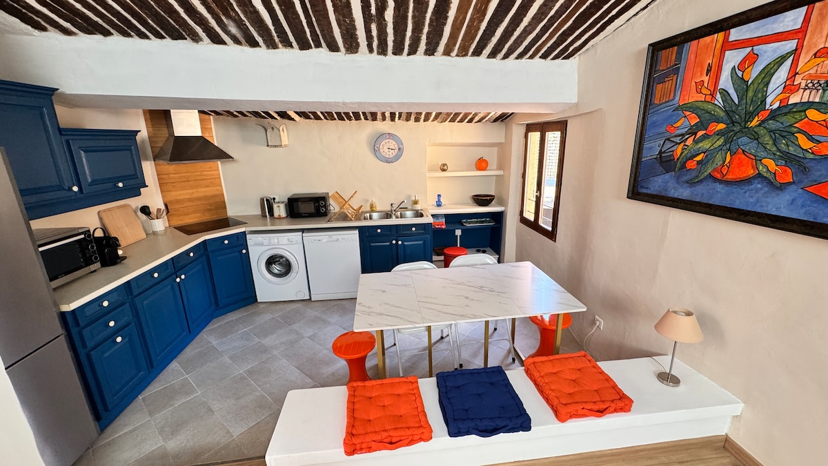 Agréable loft lumineux et entièrement refait à neuf au cœur du petit port de pêcheurs des Salins d’Hyères. Espace de vie sous une verrière avec cuisine ouverte, petite chambre séparée et salle de douche avec wc. Climatisation et équipement complet pour votre séjour. Situation idéale à 50m de la mer et à 200m des plages de sable. Commerces et restaurants à proximité immédiate. Stationnement gratuit et facile dans le quartier. Aéroport à 5km.