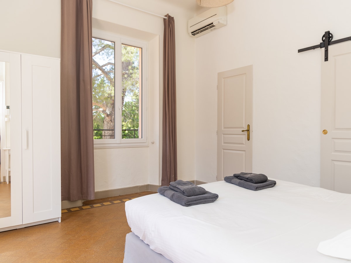Notre maison est située sur une des collines du village de Pignans dans le Var. Nous vous proposons 2 chambres indépendantes attenantes à notre maison. Depuis la terrasse des chambres, vous avez une vue magnifique sur le massif des Maures. Chaque chambre est équipée d'une salle de bain et WC. Vous avez accès à la piscine et à la cuisine extérieure à partager avec les autres voyageurs et les propriétaires.