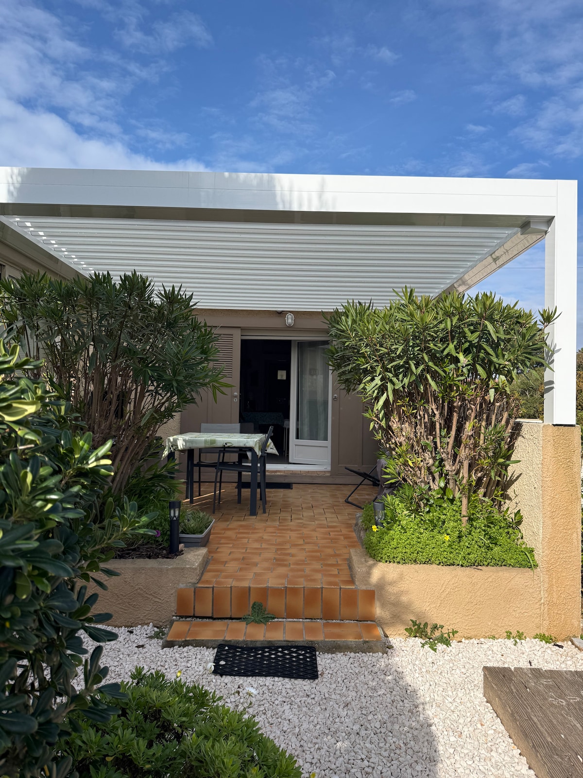Bienvenue dans notre studio de 30m² entièrement refait à neuf en 2024, situé sur la Presqu’île de Giens, en rez de jardin avec terrasse de 16m ² Vous serez dans une résidence sécurisée, clôturée avec place de parking privative. Vous aurez un accès à la plage à 200m à pieds par un chemin privé À 300 mètres à droite en sortant de la résidence se trouve le « Marché bergerie » avec boulangerie, primeur fruits et légumes, poissonnerie, produits régionaux et terrasse vue sur les vieux Salins d’Hyères🦩