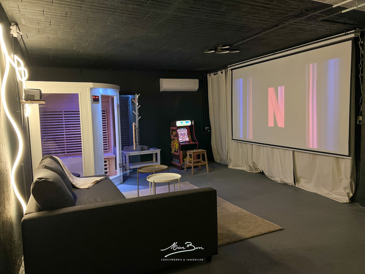 Lodge exotique et romantique avec grande terrasse sud et jacuzzi chauffé, une vue imprenable, sans vis à vis. Lit Queen avec matelas mémoire de forme. Linge fourni, shampooing douche, peignoirs, Salle de bain, douche italienne. TV connectée. Lodge au 1er étage d'une résidence, entrée indépendante, 1 stationnement sécurisé dans la propriété. Quartier résidentiel, à flan de colline. Profitez du jacuzzi à 37 degrés même en hiver sous les étoiles et la lune ! 🤎⭐️🌝 Départ tardif sur demande.