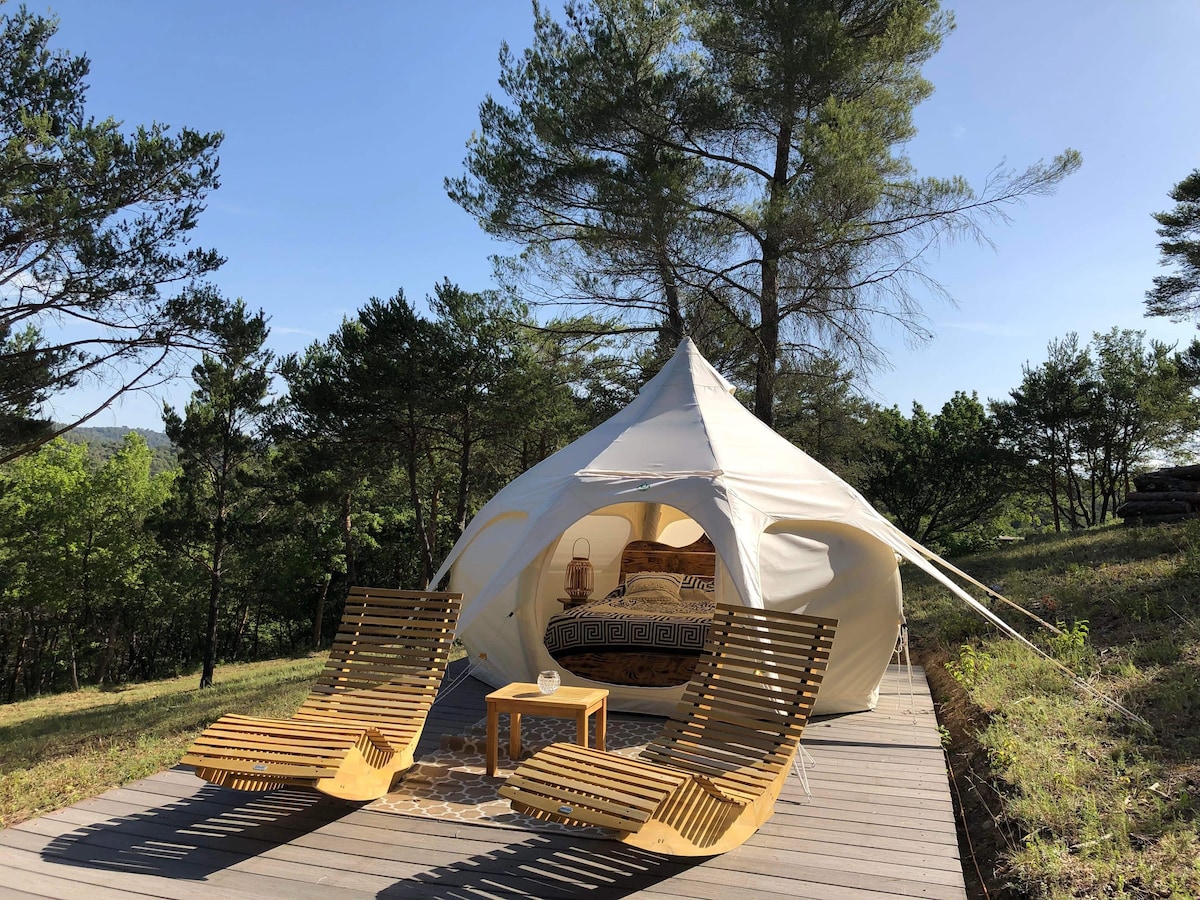 Les tentes Inuit se trouvent à mi-chemin entre le lac du Verdon et la mer. Le lieu vous offre un calme absolu et la reconnexion avec la nature. Nous sommes sur un site unique en Europe pour observer les étoiles. Notre logement insolite est autonome(eau / électricité) et écologique pour une immersion dans le respect de la nature avec tout le confort nécessaire. un espace privé de 500m2 sans vis à vis. Une caravane aménagée avec goût en sanitaire et cuisine. Un barbecue est à votre disposition.