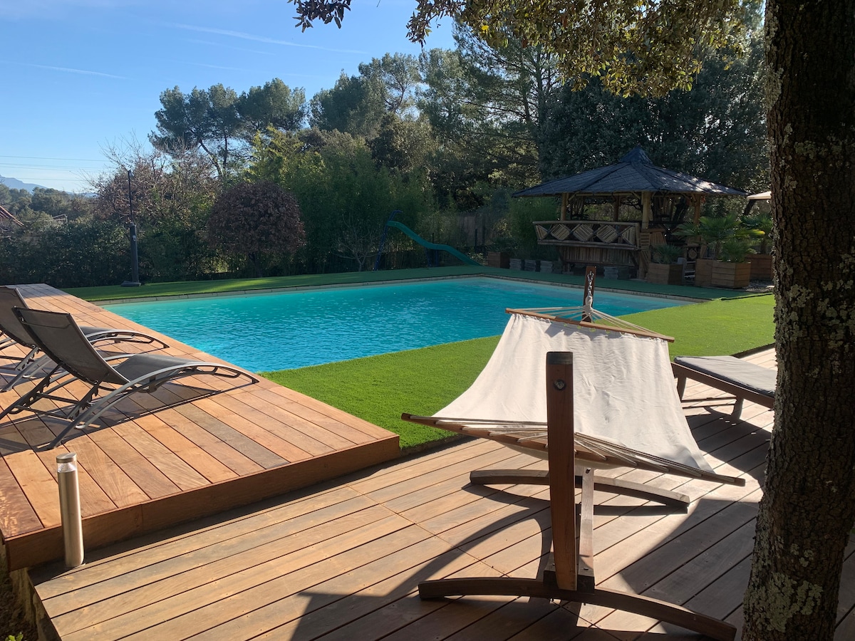 Studio cosy climatisé avec jardin privé clôturé, wifi et piscine rénovée en 2024 avec plage. Notre studio « Le Magdalena » est au cœur de la Provence pour un séjour reposant. Le studio de 19 m2 est équipé pour 2 personnes. Grande piscine partagée uniquement avec les propriétaires, de 6x10 m plage avec transats et boulodrome. Un jardin clos de 200 m2 vous est réservé. Il est équipé d'une terrasse, d’une table en bois, d'un hamac, de 2 relax et d’une plancha. Parking privé et sécurisé.