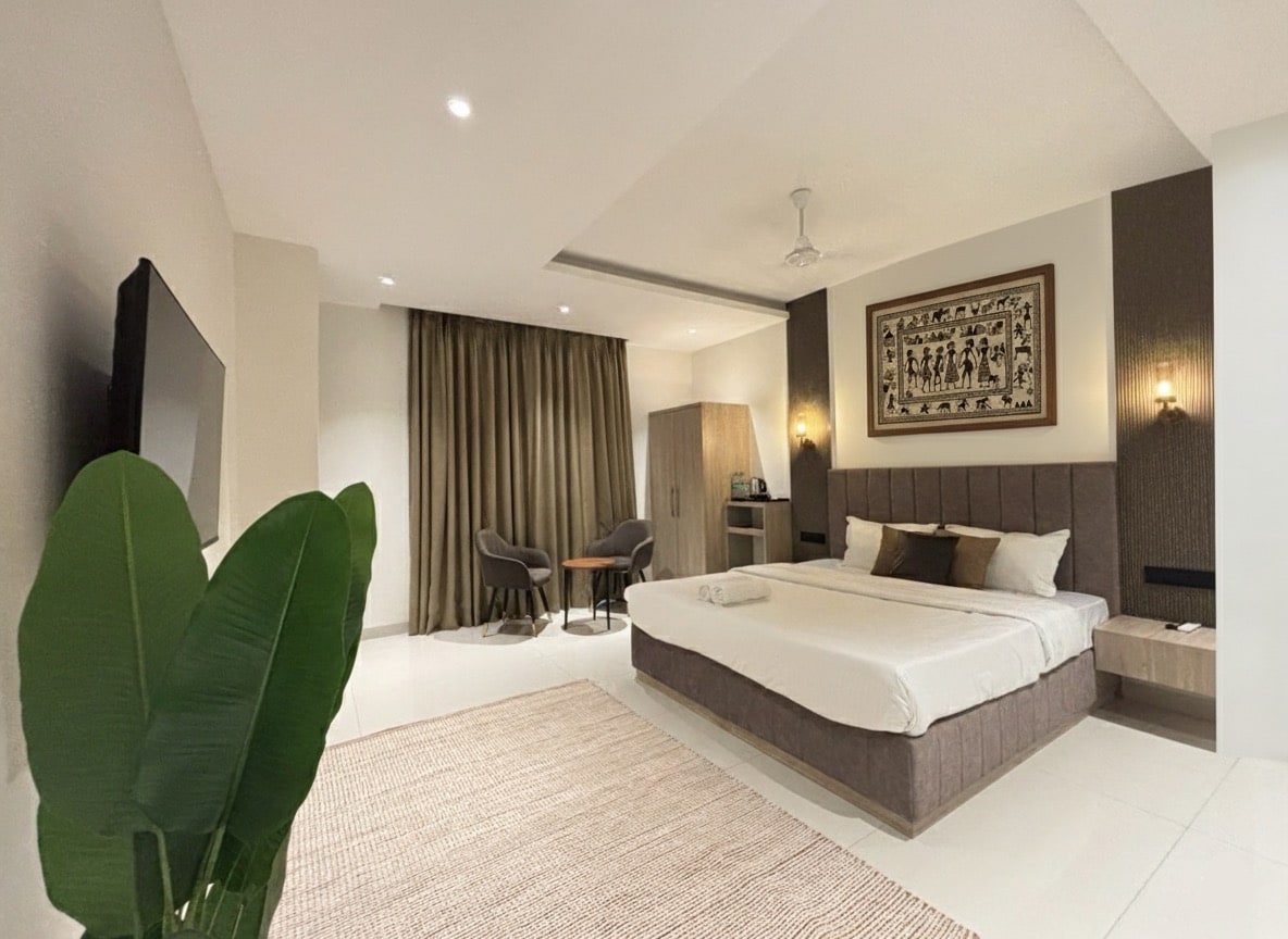 Stunning Hotel, where every detail is designed for ultimate relaxation and indulgence. The spacious rooms, adorned with elegant furnishings, offer breathtaking street views . Guests can unwind at near by Ayurvedic spa, enjoying rejuvenating treatments inspired by local traditions. Fine dining options feature gourmet cuisine crafted by renowned local chef served with exquisite. As the sun sets, the sound of gentle temple bells creates a tranquil ambiance, making it the perfect place.