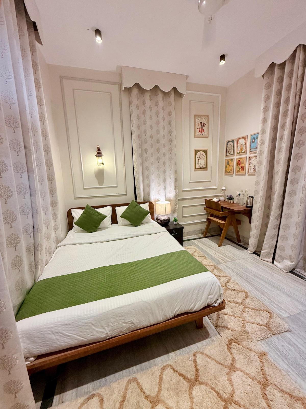 Kashi Niwas captures the essence of heritage living, blending vintage furniture, beautiful artwork, and a private backyard for a truly royal experience. Located just 800 meters from the ghats, temples, and vibrant market filled with restaurants, it offers the perfect mix of tradition and convenience. Step into a world of timeless elegance, where every detail brings you closer to the charm of the past while enjoying modern comforts.