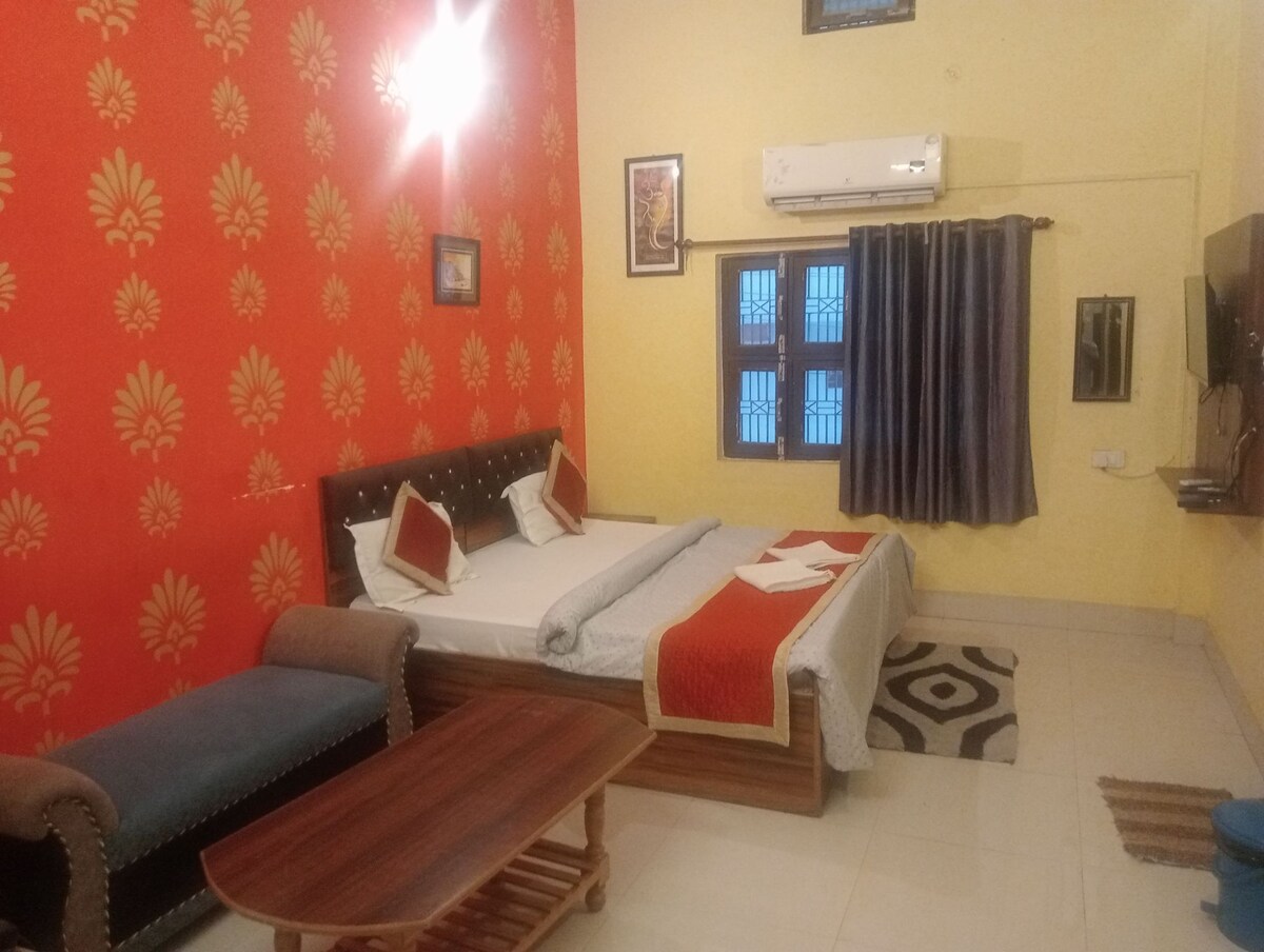Two Bedoom Deluxe Family Suite with shared Kitchen, Terrace Garden and Lift. The property is 1 km from Banaras Railway Station, 3 km from Varanasi Junction main railway station and 45 minutes taxi ride from the Airport. All tourist attractions - Ganges River Banks, Kashi Vishwanath Corridor, all main Temples, Banaras Hindu University and Sanskrit University are within a radius of 3.5 km. All local transports are available at the doorstep. The area is surrounded with shops and restaurants.