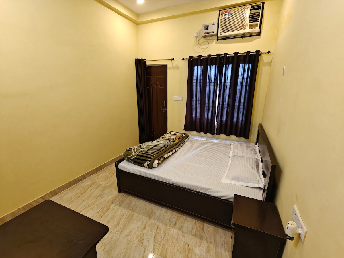This is a family home and we have 4 rooms on offer, and,all rooms are tastefully decorated with Antique Furniture,and, have natural light and air ventilation with AC and private Bathroom. We offer home cooked Vegetarian Food. Beautiful sit out Garden. We are 1.5 KM away from the Holy River Ganga in a peaceful residential area with excellent sleep quality. Bookers, wish to book more than 1 room can contact us regarding their need. This tariff listed here is for 1 room with attached Bath/Toilet.