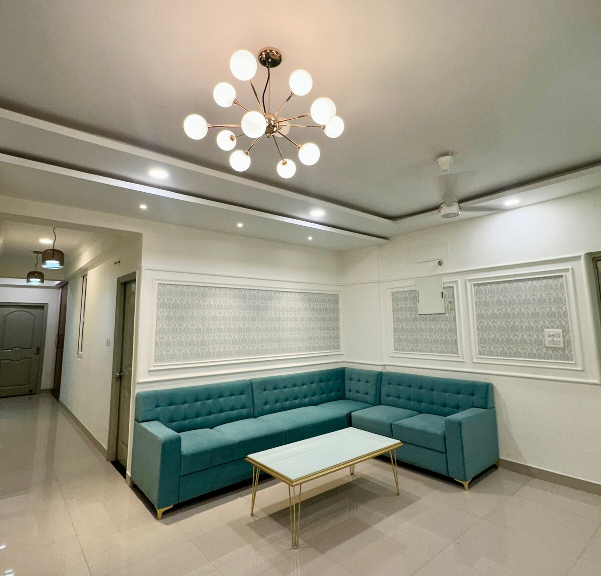 This 1st floor premium suite is based on Krishna theme. Its a fully loaded star class 390 sq ft Suite unit. This has 2 rooms, a full kitchen and can sleep 3 adults OR 2 adults and 2 kids. There is a huge terrace too and a parking. There are many restaurants and shops around. This place is centrally located and every place of importance is at a short distance and reachable in minutes. Through this AirBnB we support a community school for the needy children of our area as a part of this project.