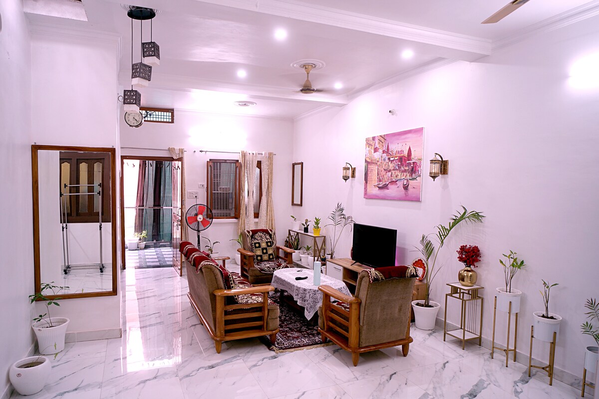 Our place is a cosy nest in this beautiful city, surrounded by greenery, making it perfect for all types of visitors. Whether you are tourists who came to mesmerise themselves with the city's beauty or came for personal or professional work, our place is worthy of a spacious stay. - 2 min walk to auto stand - 6 min drive to Banaras railway station - 5km distance majority of temples and ghats.
