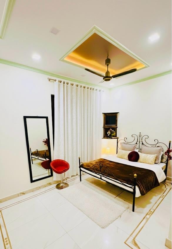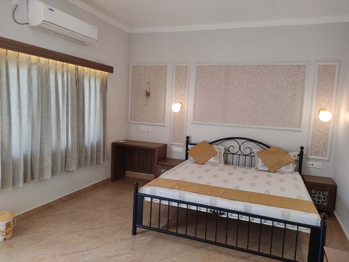 Serene Varanasi Luxury Homestay, a tranquil retreat in lush greenery. Featuring two interconnected bedrooms, this space comfortably fits families or small groups. Enjoy affordable luxury with a dedicated workspace, AC, and Wi-Fi. Perfect for families, remote workers, and spiritual seekers looking for a peaceful base in the holy city.