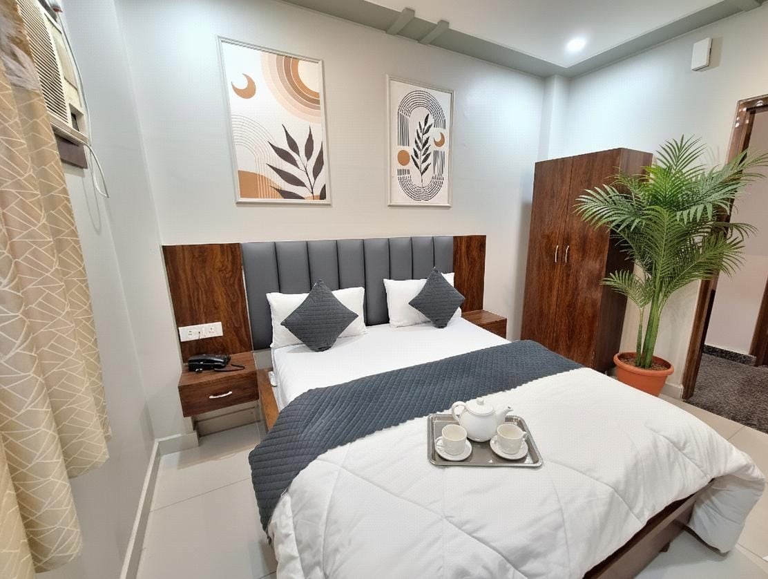Discover the magic of Varanasi while staying in a modern, comfortable hotel room right in the city centre. Perfect for travellers who want a relaxed, luxurious base with all the must-see spots just minutes away. Prime Location - 2 km from Varanasi Railway Station - 3 km from Ganga Ghat - 4 km from Kashi Vishwanath Temple - 3 km from Kaal Bhairav Temple NOTE - Staff are available at the property to assist with check-in and any needs during your stay.