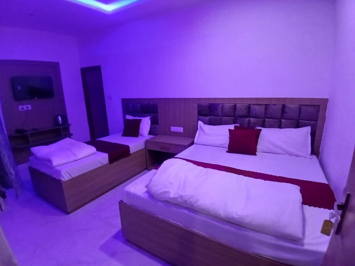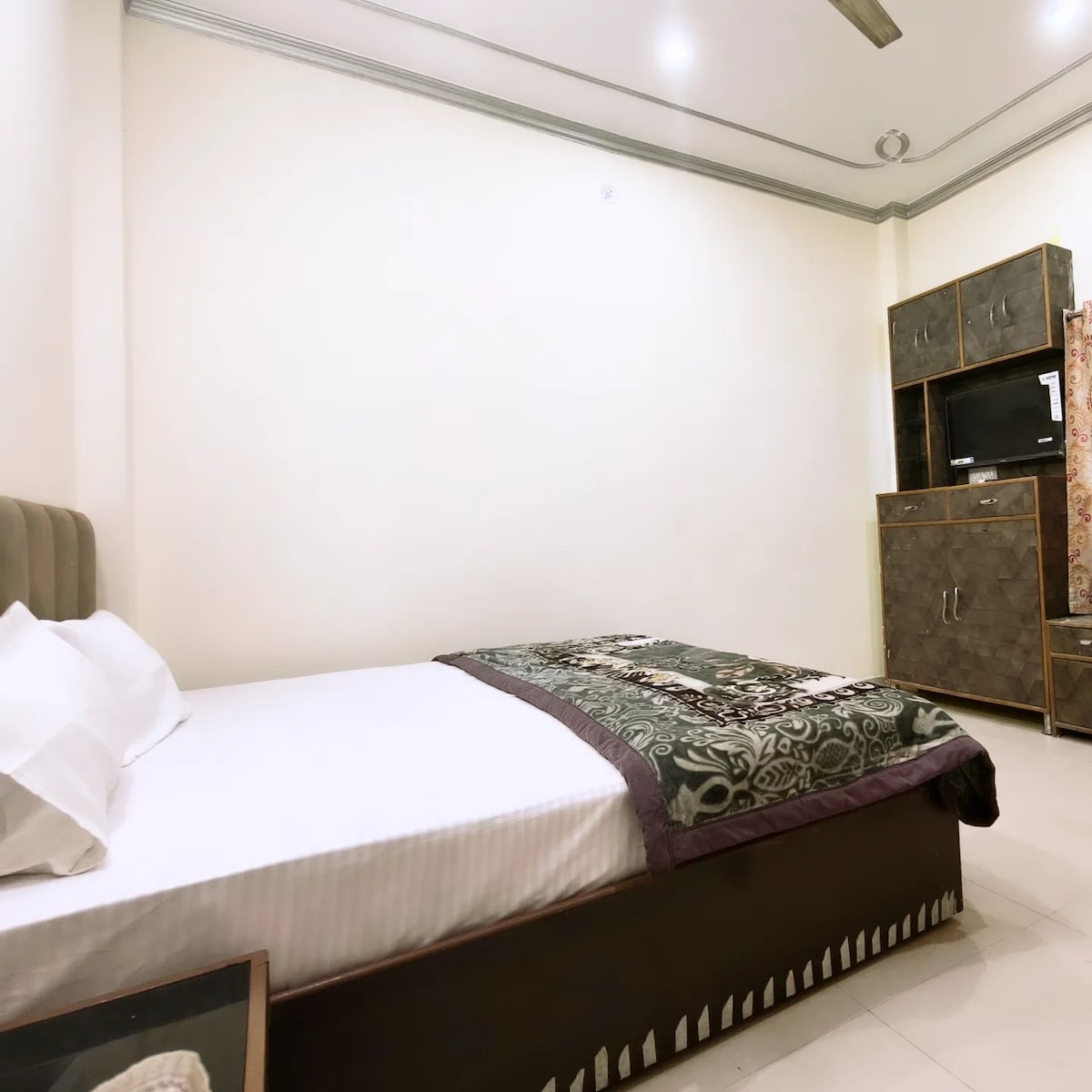 The Hotel is an independent unit located near kashi vishwanath temple It is a modern Bedroom suite with full of animities ... - A bedroom with a king-size bed . - Hotel is located near kashi vishwanath temple The hotel is fully ventilated and can accommodate 2-3 people. The king-size bed can comfortably accommodate up to 3 people. This arrangement is made with the understanding that the owner will take responsibility for your luggage during the storage period.