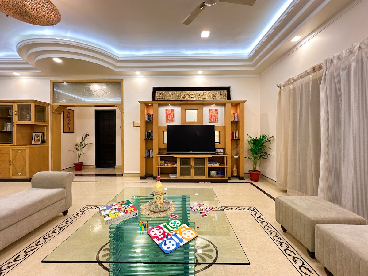 This 5 star Penthouse in central Varanasi is a uniquely planned unit. This 2nd floor 2000 sq ft premium stay comes with a huge Terrace and Garden with a feel of a 'Better Home away from home'. This can sleep 6 adults and additional kids and has fully loaded facilities with a Karaoke too. We have parking and all you need is almost next door. Every tourist place is at a short distance and minutes away. Through this, we support the adjoining community school for the needy children of our area.