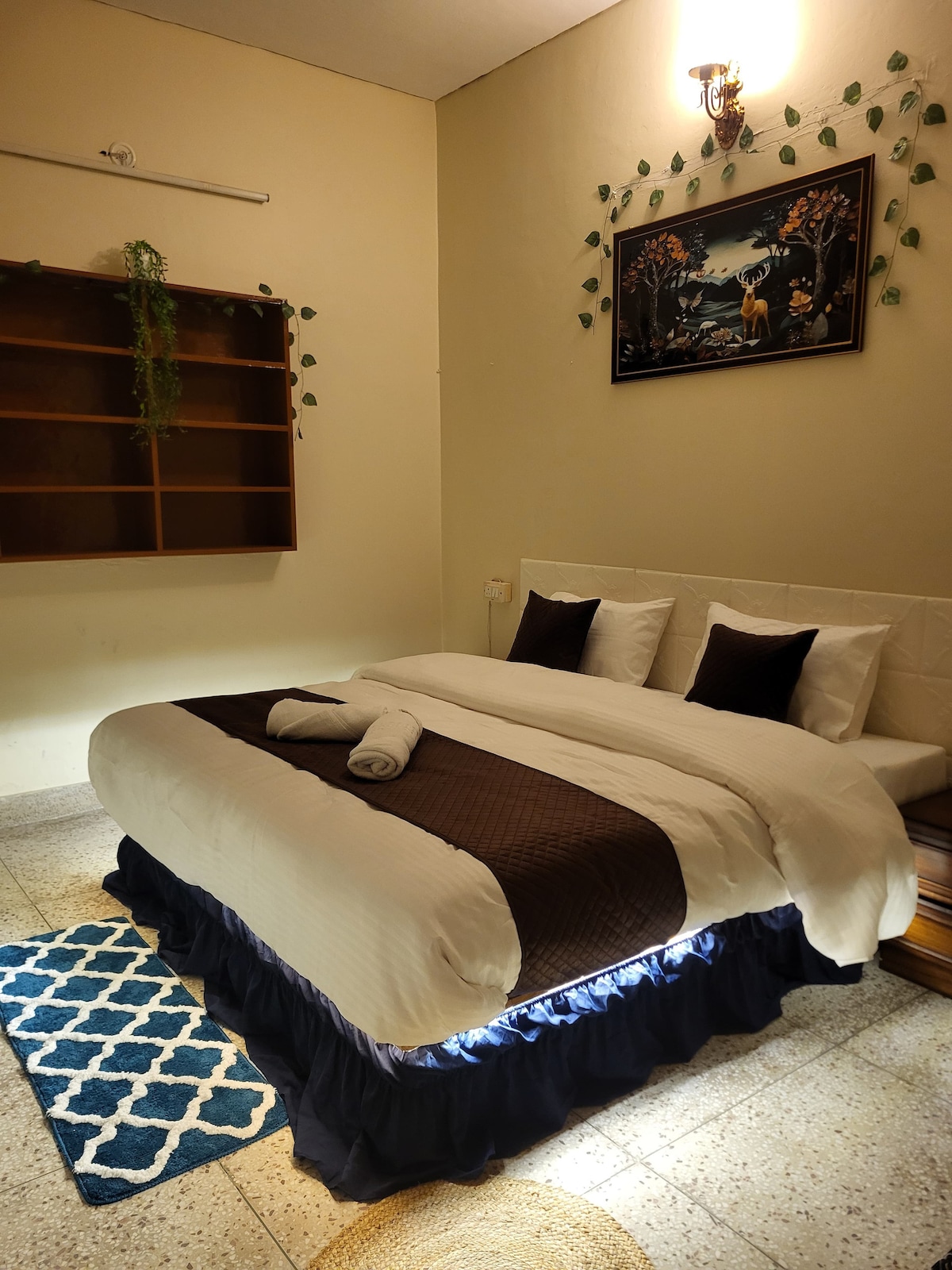 Bring the whole family to this great place with lots of room for fun. Your elegant retreat awaits at the Pearl of Varanasi. This brand-new, modern flat offers a perfect blend of comfort and style. Relax in an air-conditioned, two-room space with a plush king bed, smart TV, and all the amenities for a peaceful stay. We can also help arrange a cook at additional cost if someone needs home cooked meals.