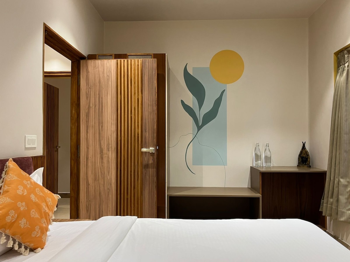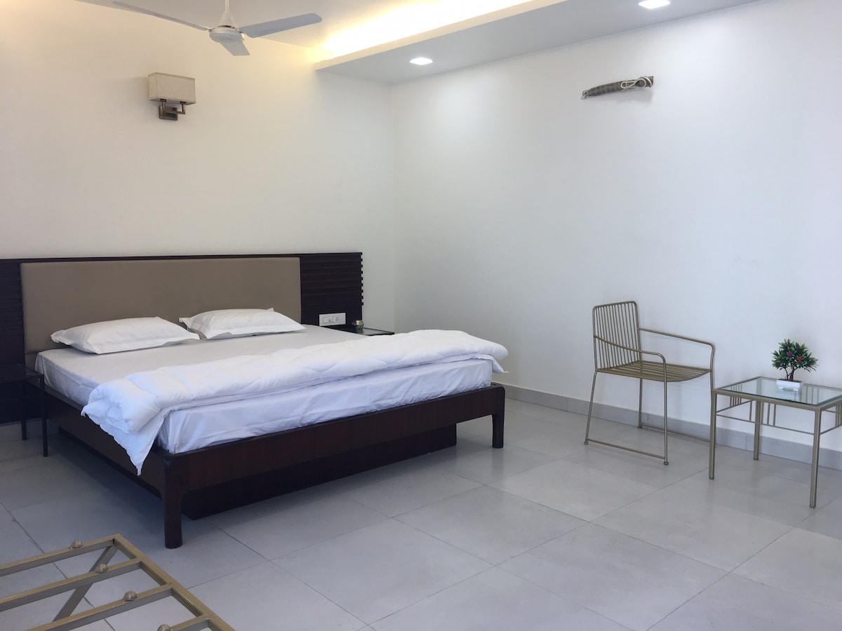 A Stylish suite in nature's lap away from the bustling city. The accommodation offers you a unique experience with modern stay amidst its rural roots. With gorgeous sunsets, access to mango yards, and the melodious chirping of birds, this is an ideal getaway for someone who wants to experience a serene stay along with connectivity to the airport and the ancient holy city of Varanasi. The property is located between the Airport and the main city situated at the bank of Ganga River.