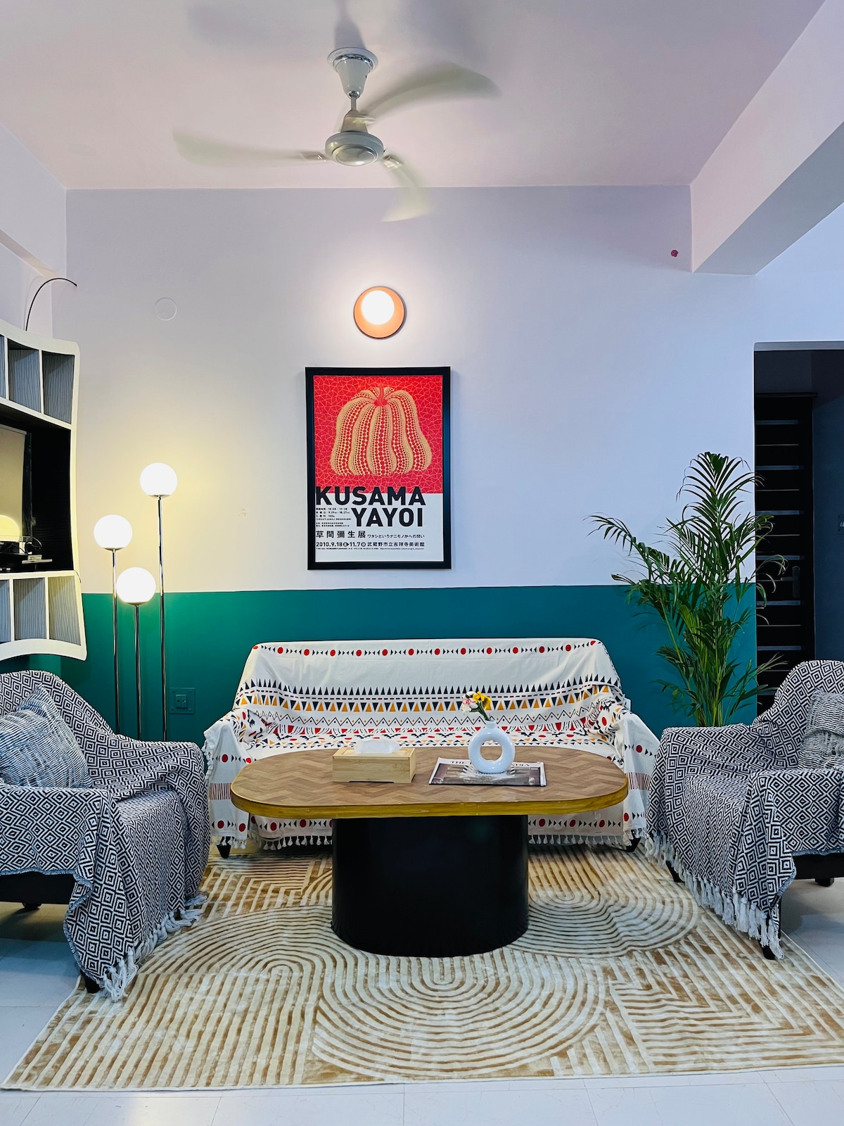 Our property is a celebration of Wabi-Sabi philosophy—finding beauty in the natural and the handmade. Every corner of this spacious apartment has been curated with high-design detailing, featuring: Natural Materials: Interiors adorned with jute, rattan, linen, and handwoven rope crafted by local artisans. The Bedrooms: Two grand, oversized bedrooms featuring high-end premium linens and a peaceful ambiance. Spa-Like Bathrooms: En-suite washrooms with premium bath fittings and luxury toiletries.