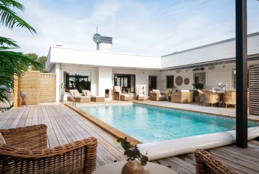 Ha kul med hela familjen på detta ljuvliga paradis i Onsala. Ett stenkast från havet finner ni denna pool villa med 3 sovrum och gym. Tillhörande gästhus med dubbelsäng och en 90cm säng. Stor trädgård med studsmatta och olika typer av utelek. Stor uteplats med pool, utekök, matbord och loungedel På gångavstånd till havet för salta bad. Lekplats 200 meter från huset. Tillhörande badbod vid Vickans badstrand på promenadavstånd från huset Väl mött! Hälsningar Johanna och Carl