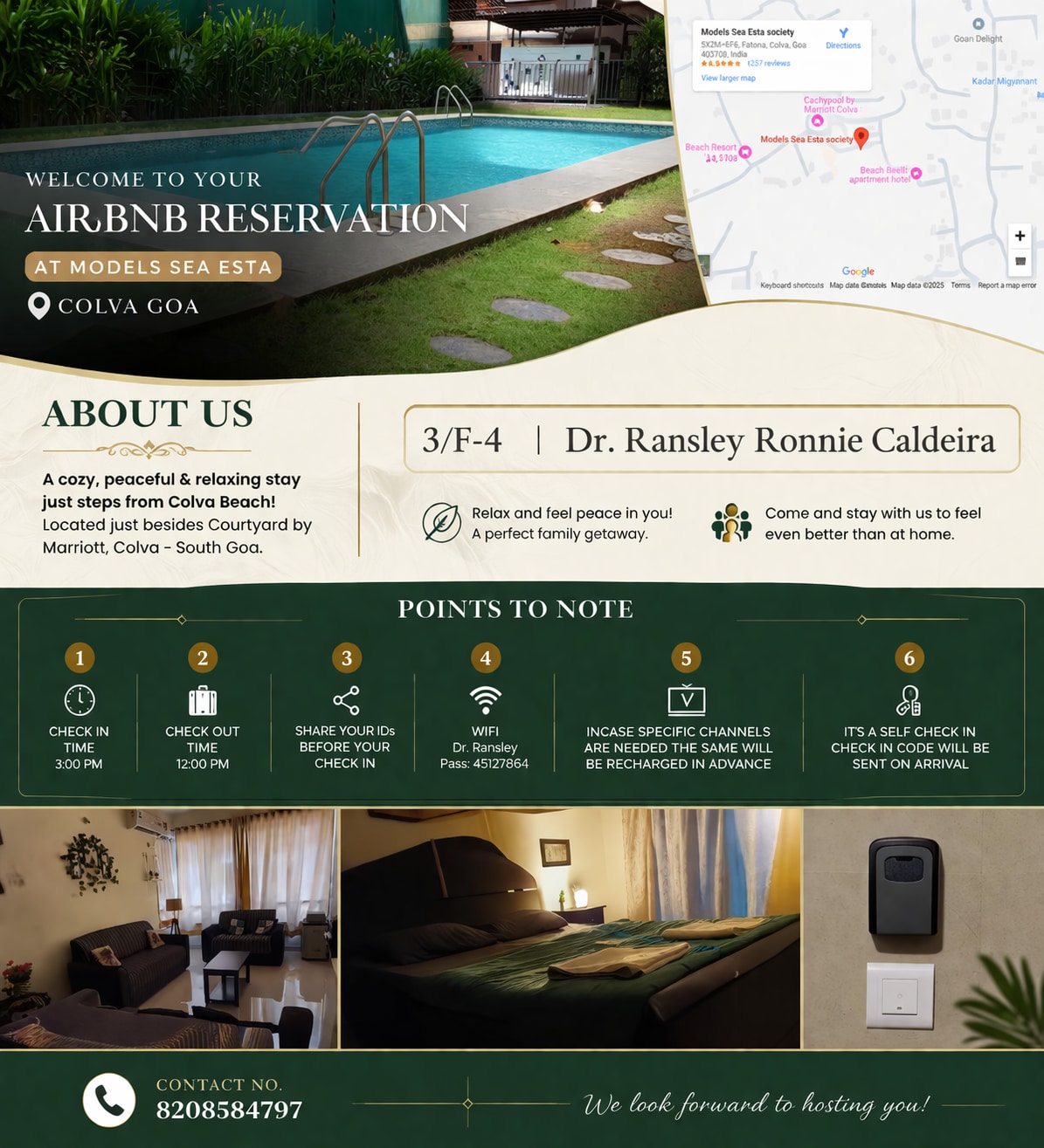 💡Private terrace 💡10-minute walk from Varca beach 💡2nd floor of building (No elevator) 💡2 Bedrooms, one featuring terrace & other with bay window 💡1 (One) bathroom 💡Fully functional kitchen 💡Wi-Fi, inverter & Car parking 💡Home delivery of fruits, Vegetables & grocery items available 💡Zomato & Swiggy delivery available 💡Bike, Car & bicycle rentals available 💡 Swiggy Instamart delivery for groceries available