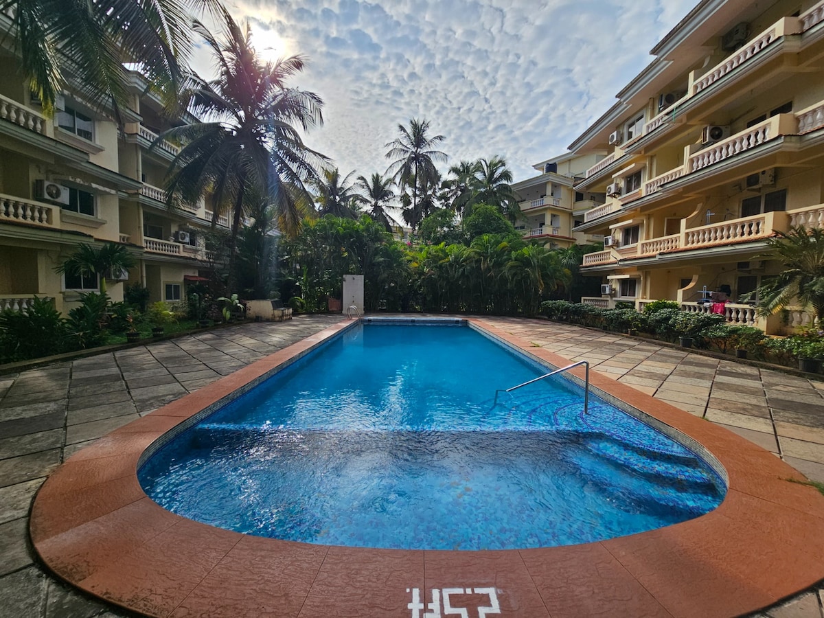 贝瑙利姆海滩1卧室Lotus Hermitage泳池公寓