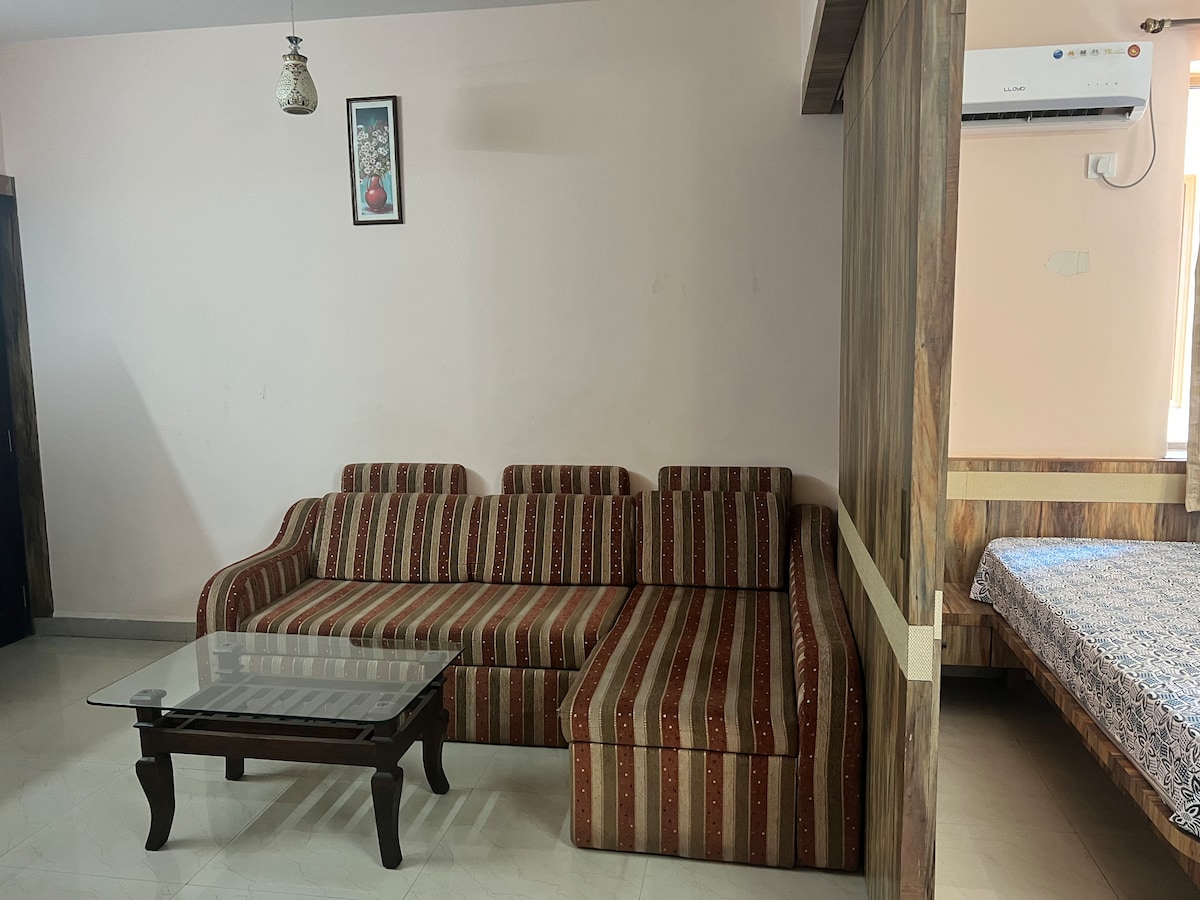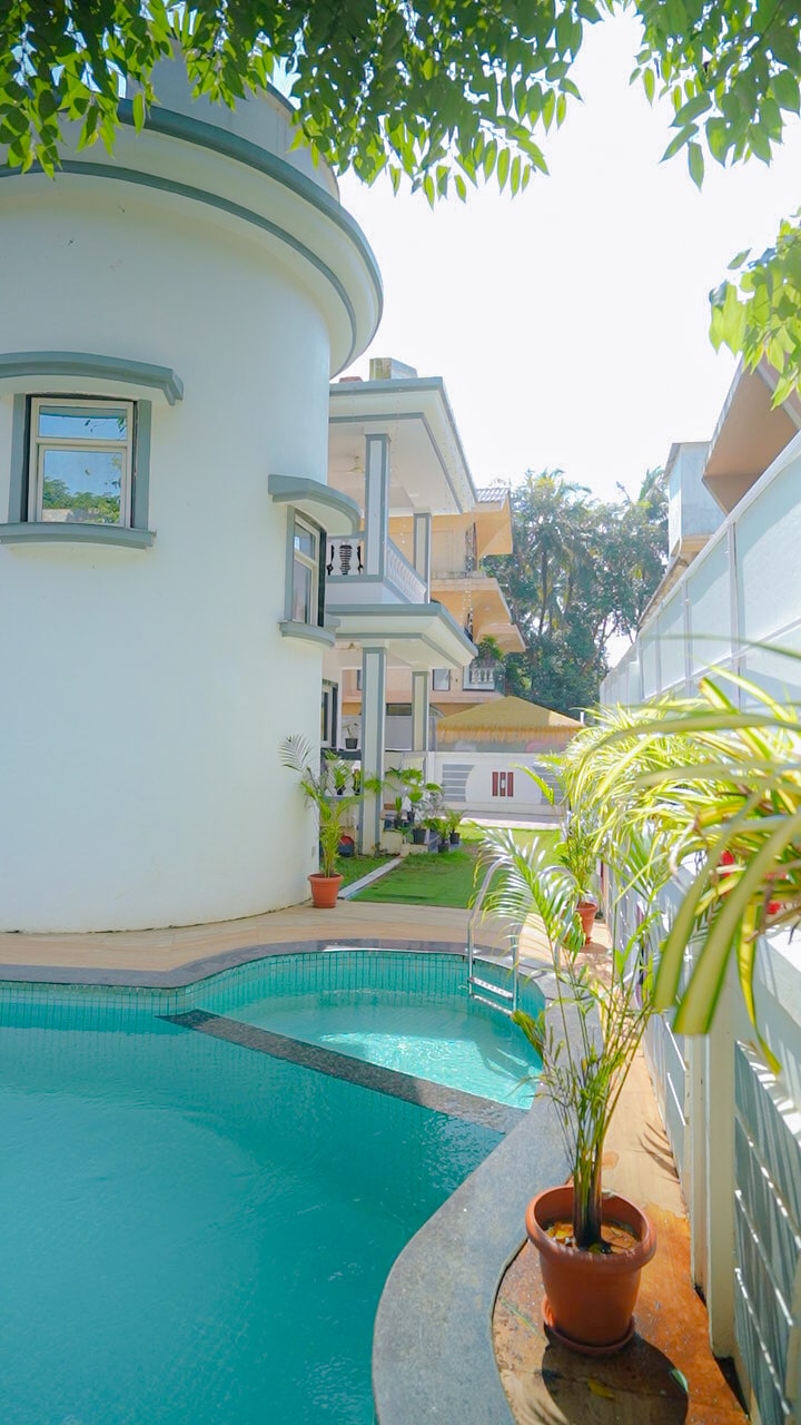Cloistered in the most prime coastal area of South Goa,our well designed 1 BHK studio is located at walking distance from Goa's famous Colva beach,yet tucked in a peaceful location.Our beach side apt complex is power packed with amenities such as Hi speed internet,pool,power backup,parking,gated complex with 24 hrs security,Clubhouse,gym making it an ideal vacation home.The grocery stores,shacks and cafes are a stroll away.The apt also has a fully functional kitchen & AC in both rooms