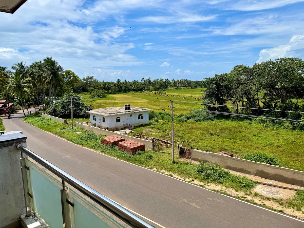 Welcome to Green Horizon - A Serene 2BHK with Gorgeous Field Views Located on the second floor (please note: no elevator) our apartment is your quiet escape into Goa’s green heart. This thoughtfully furnished 2-bedroom apartment offers open views, breezy balconies, and everything you need for a peaceful stay — perfect for couples, small families, or a group of friends. Please note - Pool isn’t provided as an amenity.