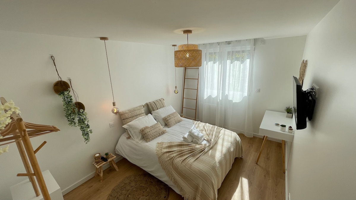 Pour vos déplacements professionnels ou bien une petite parenthèse bucolique (voir sportive), venez profiter de ce joli studio cosy à l'état neuf, idéalement situé au calme sur les hauteurs de Grenoble (15 min.) à Claix-Malhivert. Il s'agit d'un studio indépendant de 20m² et sa place de parking, entièrement équipé, donnant sur son petit espace extérieur avec vue sur Belledonne et la station de Chamrousse. Vous ne manquerez pas de sentiers pour vos balades de santé ou entrainements intensifs.