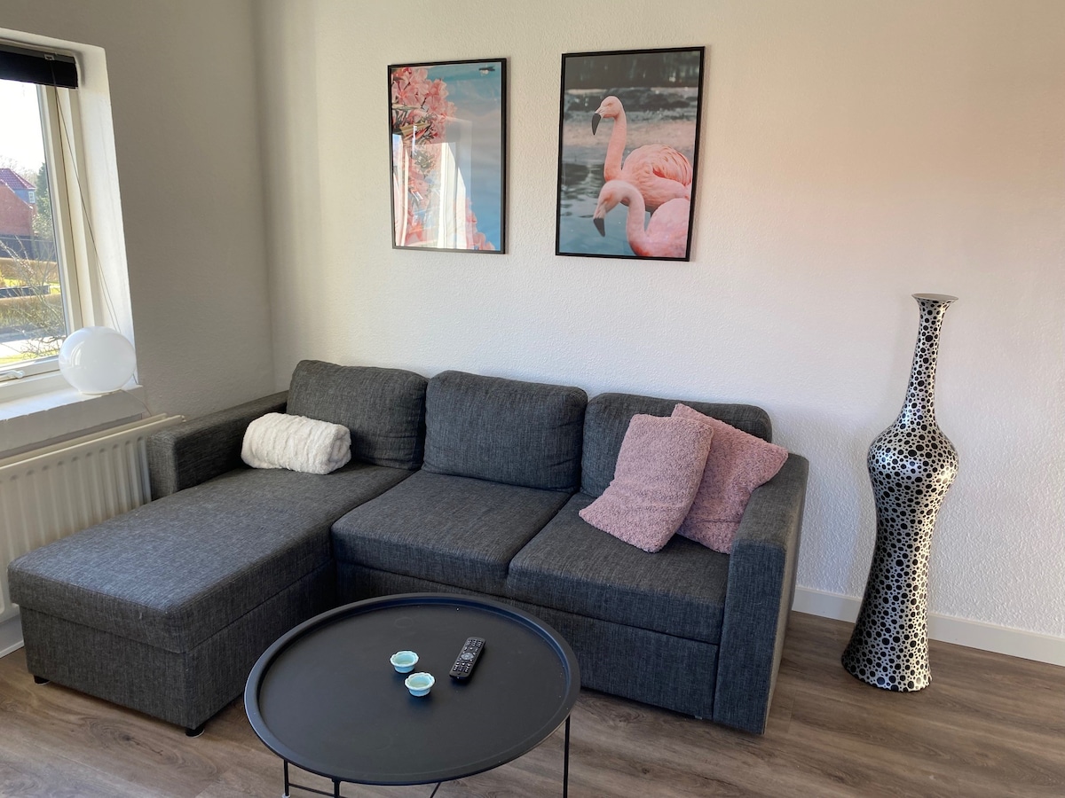 Den 110 kvadratmeter store leglighed ligger på 1. sal i en 2 families ejendom, kun 4 Km nord for Varde. Der er parkering lige uden for den store have som også kan benyttes. Lejligheden er lys og rummelig. Masser af plads til familien, og i soveværelset er der et hæve sænke bord, hvis du er nød til at arbejde i ferien. Den jyske vestkyst, med sin fantastiske natur, og dejlige strande( bl.a. Blåvand og Henne strand) ligger inden for kort afstand. 45 min. mod øst ligger Legoland forlystelsespark.