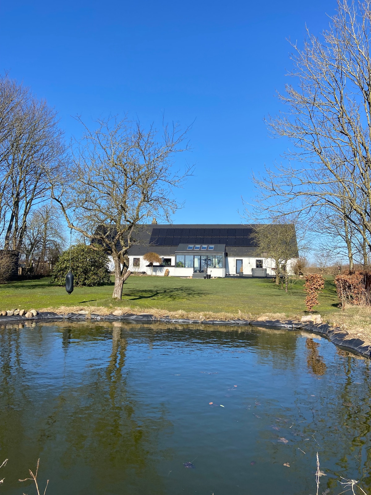 Relax in a comfortable cabin, in your own small forest of old trees, right down to the beautiful lake. The peaceful private paradise is only 20 minutes from Legoland, and the bench by the dining table is full of Lego Duplo ;) The covered terrace with daybed, the new wood-burning stove, the lightning-fast internet and the large smart TV ensure a holiday in all kinds of weather! You Will love this after a bussy day i the parks :)