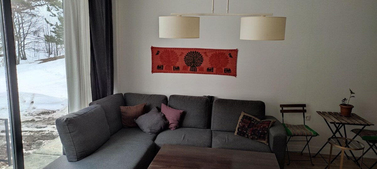 Ski and sleep in the beautiful apartment with even more beautiful view. Clean, bright, cozy and comfortable place, 500 meters from Didveli ski lift. 3 guests (maximum 4) place, 33 square meters, with Balcony, kitchen area and bathroom offering all necessary amenities for your comfortable stay